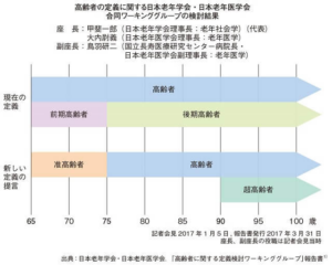 日本老年医学会では、高齢者の新たな定義として75歳以上を提案しています。これは、現代の医療技術の進歩と高齢者の健康状態の向上を反映したもので、65歳以上でもまだ社会的に活発に働き、貢献できる人々が多く存在する現実を考慮しています。この観点から、高齢者の定義を再考する必要性が高まっています​​​​。
