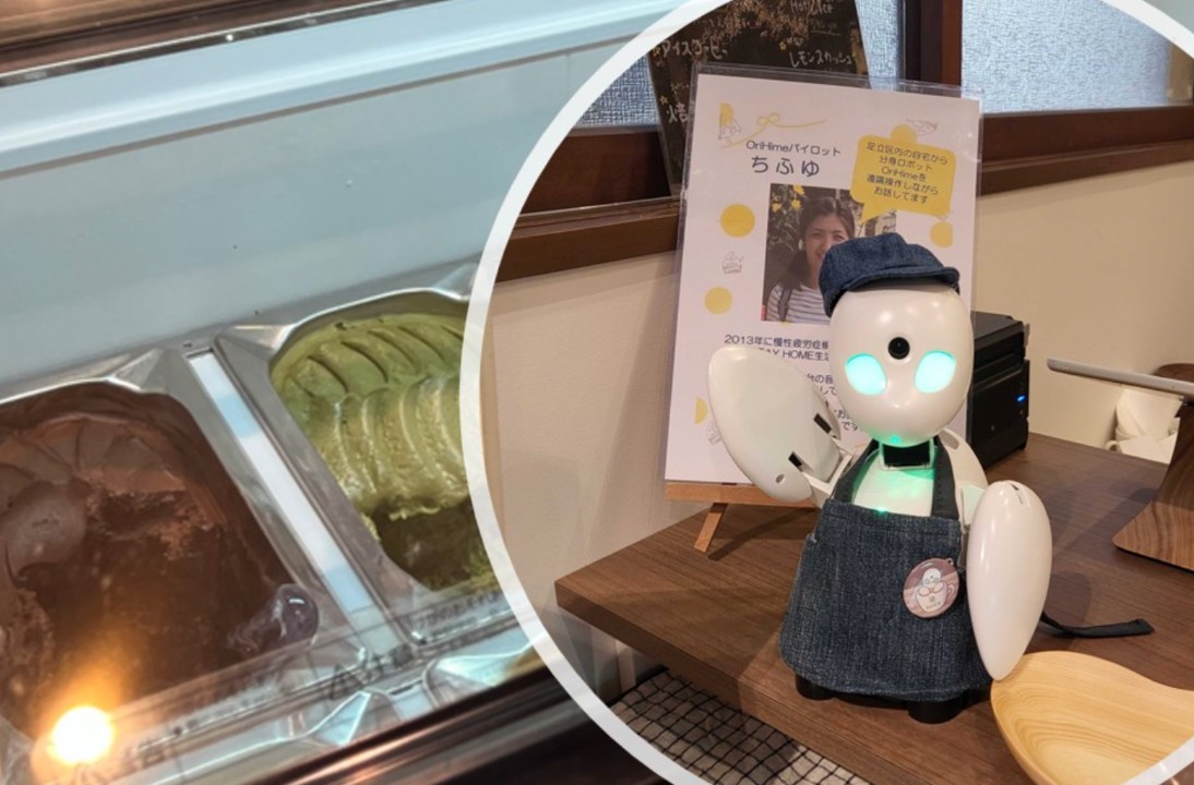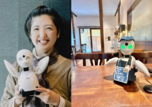 接客を担当するちふゆさんは、慢性疲労症候群という難病を抱えています。病気を発症して以来、働きたくても出勤できず、一日中自宅で過ごしていました。「社会から隔絶されていると感じたこともありました」と振り返ります。その問題を解決してくれたのが、自宅にいながら分身ロボットOriHimeを遠隔操作して接客をする新しい働き方でした。採用が決まってから、慢性疲労症候群に関する本を取り寄せ、スタッフ間で病気への理解を深めようとしてくれたりと、職場の人間関係の心地よさも大きな魅力だと言います。「皆、本当に温かくて、分身ロボットでできることを提案してくれたり、一緒に新しいメニューを考えたり仲間にしてもらえているという感覚は、すごくあります。」