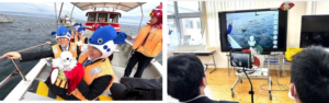 長崎県立諫早特別支援学校高等部の生徒がOriHimeを遠隔操作し、口加高校の7名の生徒がガイド役となって、早崎瀬戸の海やイルカの様子をリアルタイムでリポートするバーチャルツアーを実施。