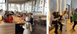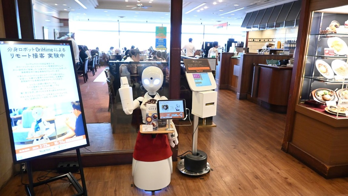 「OriHime(オリヒメ)」を期間限定で導入しました。店舗の入り口および客席2テーブルに、分身ロボット「OriHime」および「OriHime-D」を設置。病気や障害、育児・介護などさまざまな理由で外出が困難な“移動困難者”の方々が「OriHimeクルー」として遠隔で接客に参加しました。この取り組みでは、分身ロボットを介して、移動の制約を乗り越えた新たなサービスの形を模索しました。