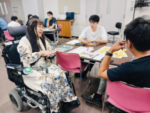 DETでは多くの障害者がファシリテーターとして活躍しています。研修の実施先は学校や企業・行政の職員研修であることが多く、基本的に現地に行っての活動になります。そのためせっかくDETの資格を取得しても、病気の進行などで外出出来ず、