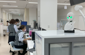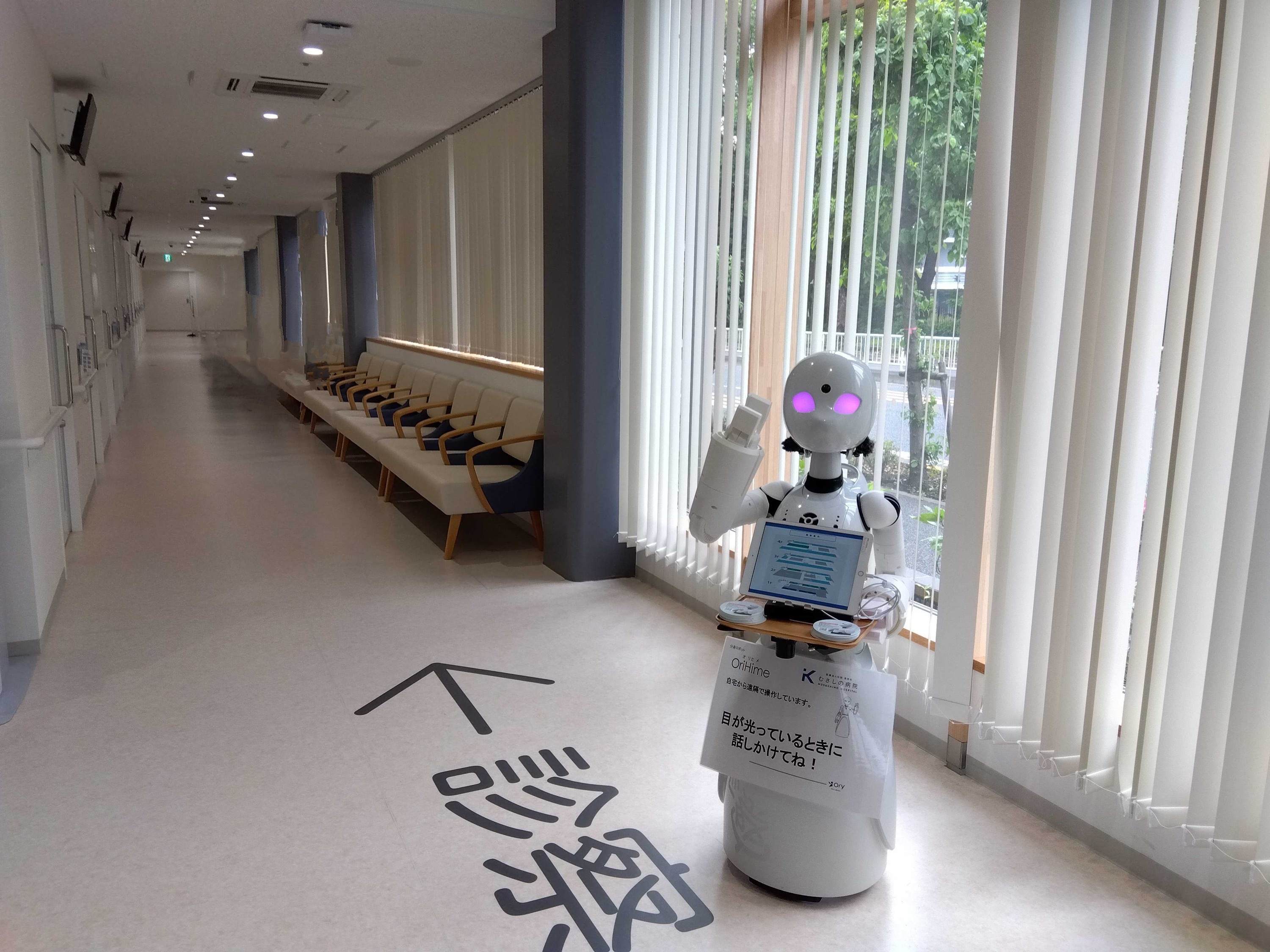 病院に入ると、大きなロボット「OriHime‐D」がお出迎え。